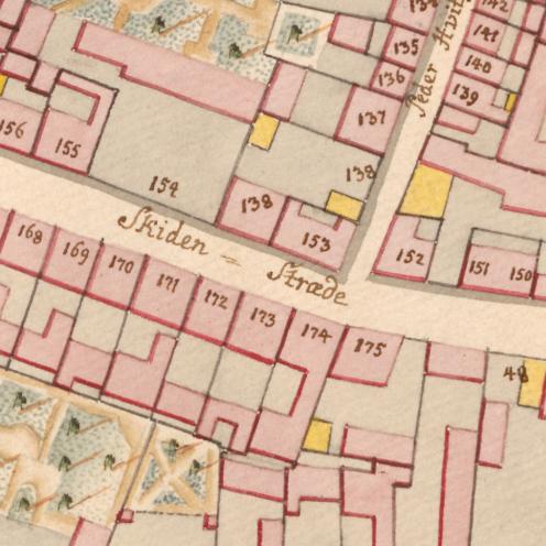 Frem til 1818 hed Krystalgade Skidenstræde. Langs gaden lå dybe rendesten hvor spildevandet flød frit.
