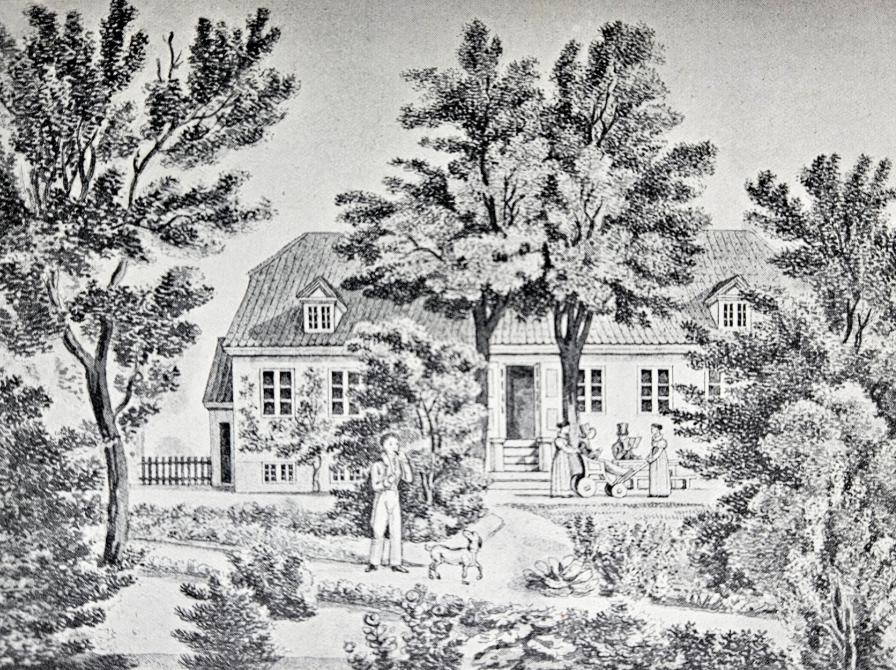 "Det var en meget smuk og frit beliggende ejendom, mod Nord og Syd grænsede til store Havearealer, med Vest med Udsigt over Fælledernes vidtstrakte Græsslette og mod Øst kun skilt fra Sundet ved bølgende Kornmarker"