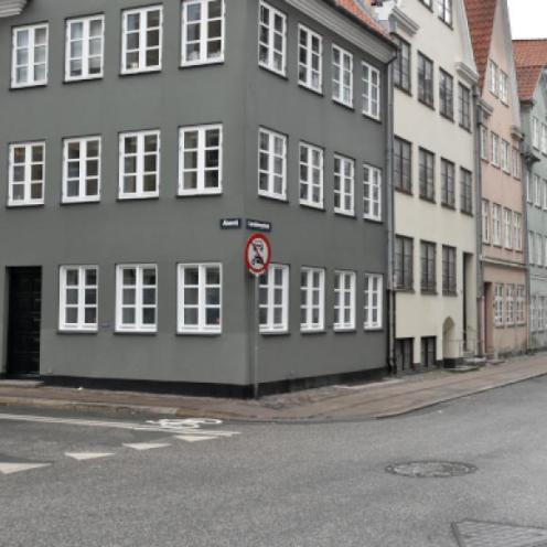 Fra hjørnebygningen Åbenrå 2 til Landemærket 55 ses en lang række ildebrandshuset. Husene er opført mellem 1731-1739.