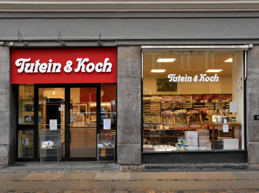 Fra starten var Tutein & Koch en reproduktions- og klichéfabrik. Fokus er skiftet fra tryk og kopi til salg af tegneartikler, kunstnerartikler, modelartikler, karton, papir og kontorartikler. Som butik åbnede Tutein & Koch i Farvergade i 1950'erne.