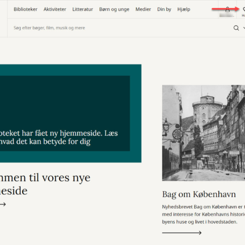 Du logger ind på din brugerprofil samme sted som på den gamle hjemmeside: I øverste højre hjørne af forsiden ved at klikke på ikonet, der forestiller en person.