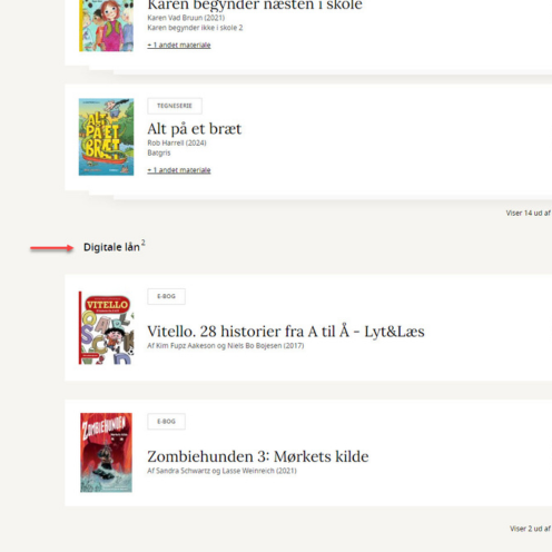 Her vises eventuelle ”Overskredne lån”, ”Fysiske lån” og som noget nyt også dine ”Digitale lån”, så du har et samlet overblik over alle dine lån.