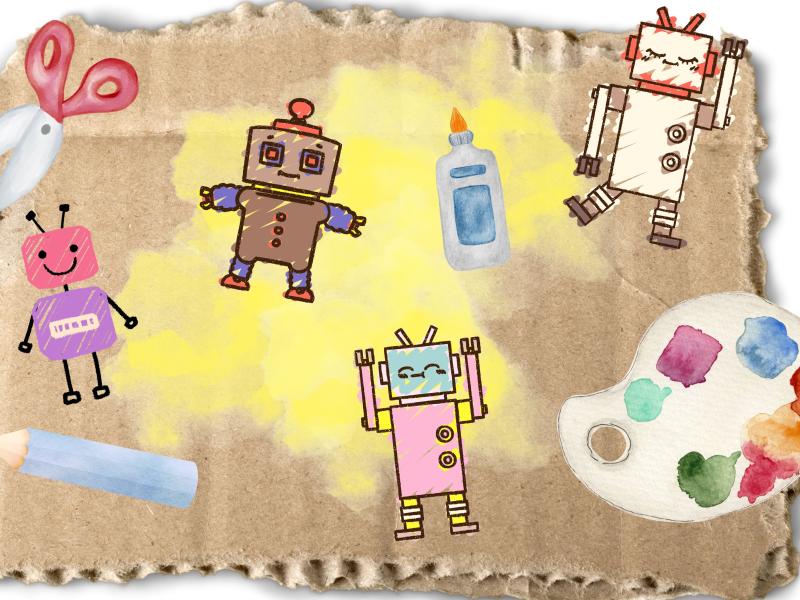 Kom og byg fremtiden i pap med Søs fra Den Lille Kunstskole. Sammen udforsker og udfordrer vi højteknologien og AI i fantasiens navn, og bygger robotter af pap, dimser og dutter.